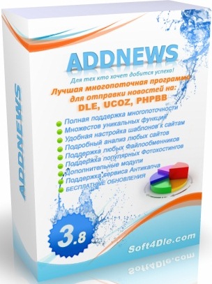 AddNews 3.8 - это уникальная многопоточная программа, которая, предназначается для добавления новостей на сайты сделанных на самых распространенных движках DLE, PHPBB и ЮКОЗ.
