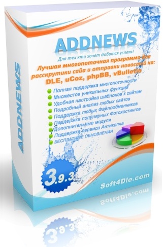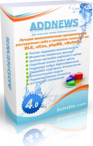 АддНевс, AddNews 3.9 - это уникальный софт, который служит для добавления постов на сайты, сделанные на самых известных движках vBulletin, ЮКОЗ, DLE Engine и PHPBB.