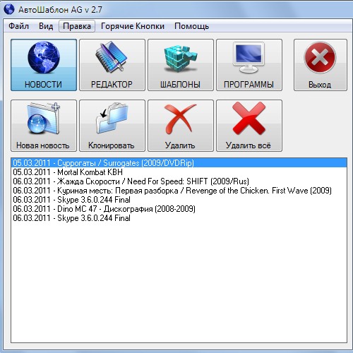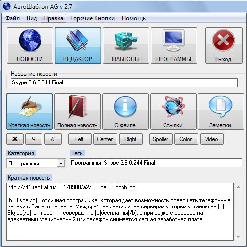 АвтоШаблон AG 2.7 - поразительная программа которая может значительно значительно облегчить и ускорить ручное добавление постов с картинками и ссылками для скачивания практически на все блоги, форумы и сайты варезной тематики.